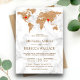 Bronze Marble World Map Traveling Hearts Wedding Invitation