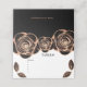 Introducing our elegant Bronze Rose with Leaves on Black customizable place card. This multifunctional card features a striking bronze rose design on a sleek black background, perfect for adding a touch of sophistication to your event. The front includes space for the table number and guest list, while the back offers a heartfelt thank you message. Inside, there's a designated area for writing down your menu, eliminating the need for multiple signs and keeping everything organized in one beautiful place.