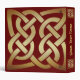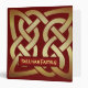 Set here over an earthy red background, the bronze toned celtic knot serves to set the stage for a box holding your text.