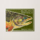 The beautiful Brook Trout, salvelinus fontinalis. Variations of the colors and pattern of this fish's gorgeous skin make this puzzle really fun to work. A terrific gift for fly fishing fans and ichthyologists for a birthday, Christmas and ANY other day of the year, too! Both fishermen and fisherwomen love this design. From an original watercolor painting by Doug Shultz. Green background with white lettering; other colors available.