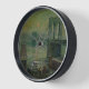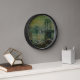 The size of the clock is dramatic and the abstract alcohol ink design is soothing and intricate at the same time. I chose the black frame that adds pop to the blue and gold design. The gold printing would be better in a slightly darker or larger font. I love it and I’m looking for just the right place in ny new apartment. I would recommend this clock for a personal gift or a present. I feel that the quality is excellent for the money! I’m a bit of a clock nut so I’m pretty particular about my purchases. The clock is larger in diameter than many if the clocks I have, so it stands out very well. I think a slightly darker printing color and a moderately larger size would best suit a professional decor or add more impact in a work place item.