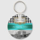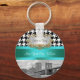 Brooklyn Bridge NYC Black White Houndstooth Teal Ribbon Collection Key Chain