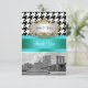 Customizable Invitations and accessories with a black and white East River skyline view New York City's iconic Brooklyn Bridge and Municipal Building with a boat passing by. It also features a black and white houndstooth pattern, a teal ribbon and a white label in your choice of a silver or gold look frame. (Note: some coordinating accessories may not have the above mentioned photo or additional design elements.)