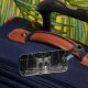 Of of the two luggage tags have some scratch on it.