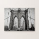 Iconic Brooklyn Bridge black and white photo, NYC.