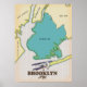 Brooklyn New York Map in a wonderful vintage or retro style decorated with a bi-plane.