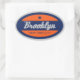 Oval signage design featuring the neighborhoods of New York City. Official orange and blue colors of NYC. New York City borough of Brooklyn.