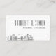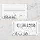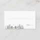 A set of unique wedding escort cards for a marriage taking place in the beautiful city of Brooklyn. They feature a stylized skyline of the city on one side, with a spot for the person's name to be written in. On the reverse side is a place for the wedding couple's names and wedding date with the skyline also presented in the bottom corner.