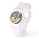 I only have one complaint. I ordered the watch with clear case and strap, and what was sent was white case and strap. I'm going to keep it because 1) it looks very nice in white, and 2) it would take too long to get a replacement made and sent in time for my occasion. Aside from the mix up with the color, the watch does look very good in white. The purple dial is actually sparkly which did not show in the online images. That was a nice surprise. If you like Swatch watches this is very similar to those. It's 33.6mm in diameter, 10.5mm thick, and 40.6mm lug to lug. Stainless steel case back says 3ATM/30m WR, so no swimming or showering or submerging this one. If you like Woodstock, this is a great choice.