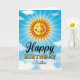 Make your Brother feel special on her birthday by sending her this cheerful smiling decorative Yellow and orange sun floating in the blue sky with clouds. Inside text says "The sun started shining just a little brighter on the day you were born."