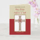 An ornate and elegant cross is highlighted over a red and kraft colored background. Perfect card to wish your brother-in-law congratulations and blessings on his conversion to the Catholic faith.