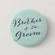 'Brother of the Groom' in black simple classic calligraphy script on a plain light blue background, wedding party / bachelor party / team groom / entourage / wedding rehearsal nametag / pin button.