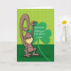 Wish your brother a shamrock full of luck on St. Patrick's Day! A cute monkey is showing you just how high that luck really is!