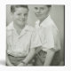 Brothers (8-9) (10-11) sitting in studio, smiling, (B&W), portrait | George Marks | AssetID: 57539459
