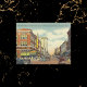 Broughton Street scene in Savannah, Ga, from the Tichnor Brothers done in the 1930s-40s, with antique cards, blue sky and city buildings.