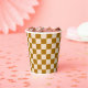 Brown and beige checkerboard pattern paper cups