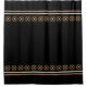 This shower curtain has a contemporary geometric design. Over laid on a black background, the design features black and brown squares and diamonds. The background color can be customized.