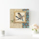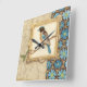 Brown and Blue Bird on a Branch Looking Up Square Wall Clock