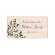 This wedding favor label features a brown and blue floral silhouette design on a cream background and coordinates with the other fine products in our
