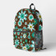 Fun backpack that features retro mod aqua blue and white flowers on brown background. Be sure to check out the other clothing and accessories in this same pattern collection.
