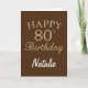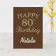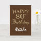Brown and Gold Glitter 80th Birthday Card with personalized name. For further customization, please click the "Customize it" button and use our design tool to modify this template.