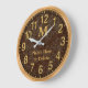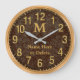 Rustic Brown and Gold Monogram Personalized Wall Clocks with Your Text or DELETE. Cool rustic brown background off set with golden colors for your Name, Monogram, Numbers and printed frame. CALL Rodney or Designer Linda: 239-949-9090 if you would like assistance in creating this cool monogrammed clock for men. Hang up in his Garage Man Cave, Men's Bedroom Clock or his Rec Room Man Cave decor. We can create matching and coordinating rustic man cave decor for guys.