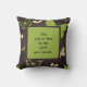 Brown and green butterfly scripture verse and inspirational quote pillow. On one side of the pillow is the Bible verse, Joshua 24:15-As for me and my house, we will serve the Lord. On the opposite side is the inspirational quote, "You win or lose by the path you choose."