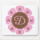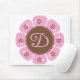 Pink and brown flower design monogram tote bags, mugs, mousepads, T-shirts, and more with the initial "D". These monogram initial items make great gifts for the girls in the wedding party and mother and grandmother of the bride and groom too!