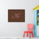 This print is in chocolate browns and pink; a dark chocolate brown border with pink polka dots, and a pink customizable monogram in the center.
