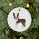 Brown And White Boston Terrier Cartoon Dog & Paws Ceramic Ornament