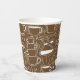 Brown hot cup with coffee brown background and white coffee-themed icons. Celebrate the coffee lover in your life with these perfect cups.