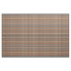 This fabric has a geometric design of a plaid with brown and white lines on a black background.