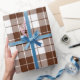 A wrapping paper designed with a brown and white plaid pattern in large size. Customize the white background among other options.