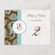 Monogram New Sizes Elegant Vintage Aqua Blue Damask on Brown Wedding Invitation-