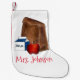 Holiday stocking features an original marker illustration of a brown bag lunch with a carton of milk and a red apple. Simply personalize with the name of your favorite teacher!