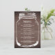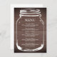 Brown barn wood mson jar wedding menu template. Rustic glass jar silhouette design for stylish themed wedding party. Customizable templates for couples getting married. Part of beautiful matching set.