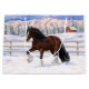 Bay Gypsy Vanner Irish Cob Tinker draft horse running In snow