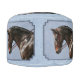 Portrait of a dark seal brown warmblood dressage and sport horse with an English riding style bridle. Original artwork by Crista S. Forest.