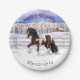Brown Bay Pinto Gypsy Vanner Draft Horse In Snow Paper Plates