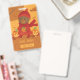 An adorable autumn hall pass badge for elementary school featuring a brown bear picking up a small pumpkin . Personalize it with the teacher's name .