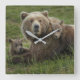 Brown Bear Cubs Cuddling with their Mother Square Wall Clock