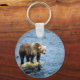 Brown bear on rock in river keychain