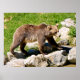 Brown bear (Ursus arctos) seen from profile walking on rocks near of water