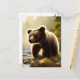 A postcard for wildlife lovers, featuring AI generated digital painting of beautiful brown bear in a mountain stream.