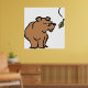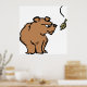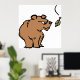 Brown Bear with Falling Autumn Leaf Cute Wildlife Poster