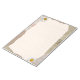Beautiful vintage notes page in beige and brown colors, decorated with daisy blossoms and postage stamps in the background. Fill the lines with your own notes or any other text.
