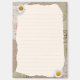 Beautiful vintage notes page in beige and brown colors, decorated with daisy blossoms and postage stamps in the background. Fill the lines with your own notes or any other text.