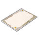 Beautiful vintage notes page in beige and brown colors, decorated with daisy blossoms and postage stamps in the background. Fill the lines with your own notes or any other text.