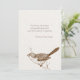 An "embossed" white background holds your heartfelt sentiments and is embellished by a little brown bird. Simple elegance. The card is easy to customize with your wording, font, font color and choice of six paper types.