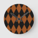 Brown Black Harlequin Diamonds Checkers Design Round Clock